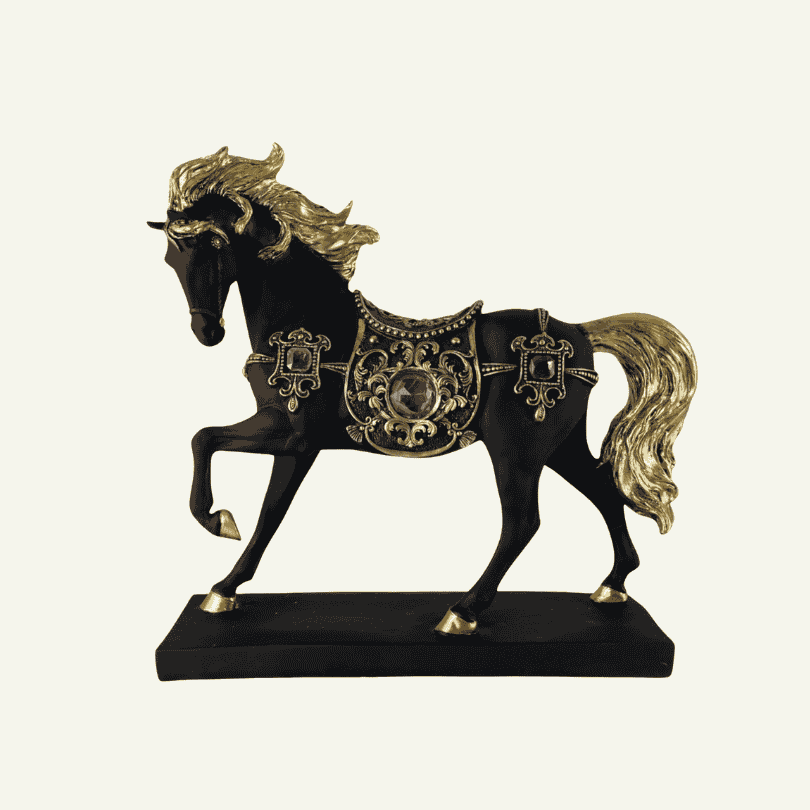 Cavallo Regale – Escultura Decorativa de Caballo Barroco con Detalles Dorados