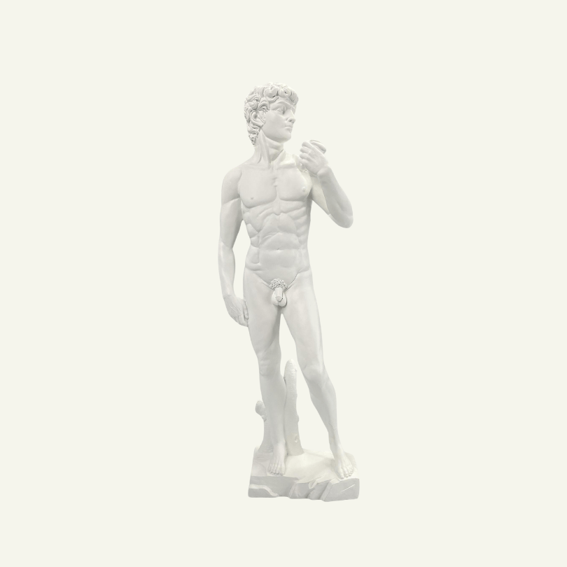 Una oda al arte supremo del Renacimiento, Davide Classico es una reproducción estilizada de la icónica escultura de Miguel Ángel, símbolo eterno de la belleza clásica, el equilibrio y la fuerza contenida. Esta versión, en un blanco puro y acabado mate, transmite una presencia serena y monumental, perfecta para ambientes sofisticados que celebran el legado artístico europeo.