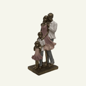 Una representación entrañable de la conexión y el afecto que definen a una familia unida. Esta figura en resina captura con gracia el momento de caminar juntos como un solo corazón, con padres e hijos entrelazados, transmitiendo protección y ternura a través de su lenguaje corporal.
