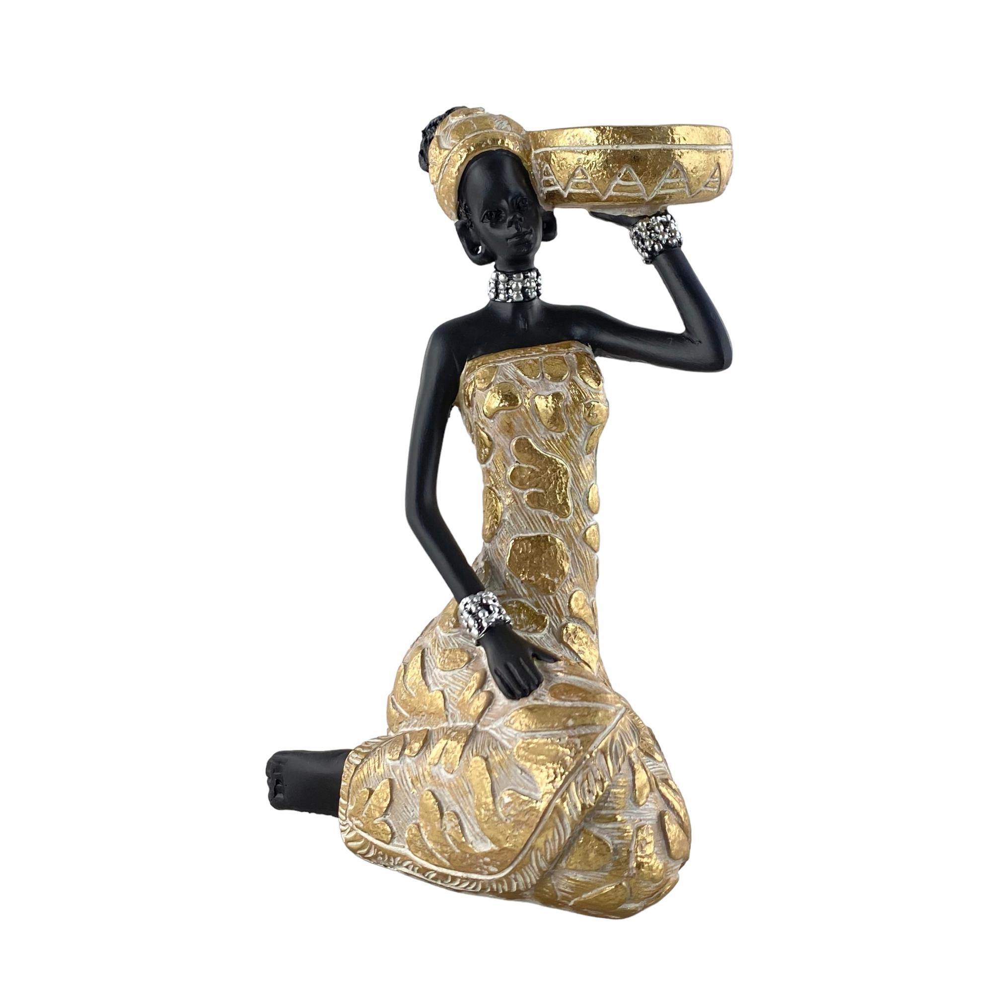 Figura decorativa Africana Sentada Cargando Cuenca