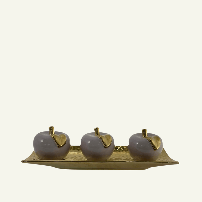 Set de 4 piezas: bandeja + 3 peras decorativas.