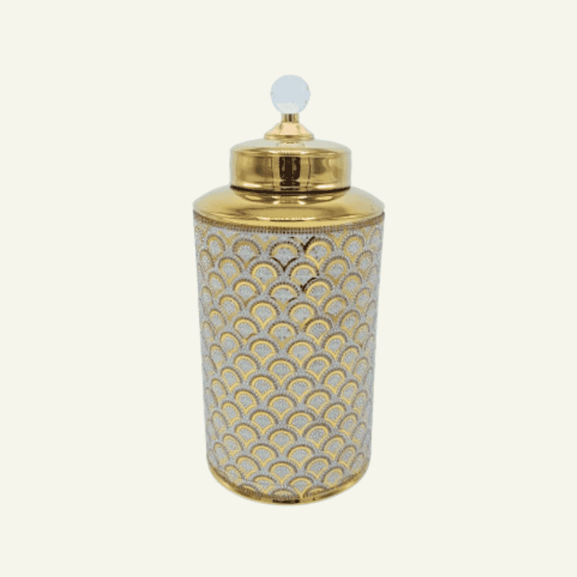 Urna Decorativa “Scintilla Dorata Alta” – Porcelana con tapa de cristal 28cm