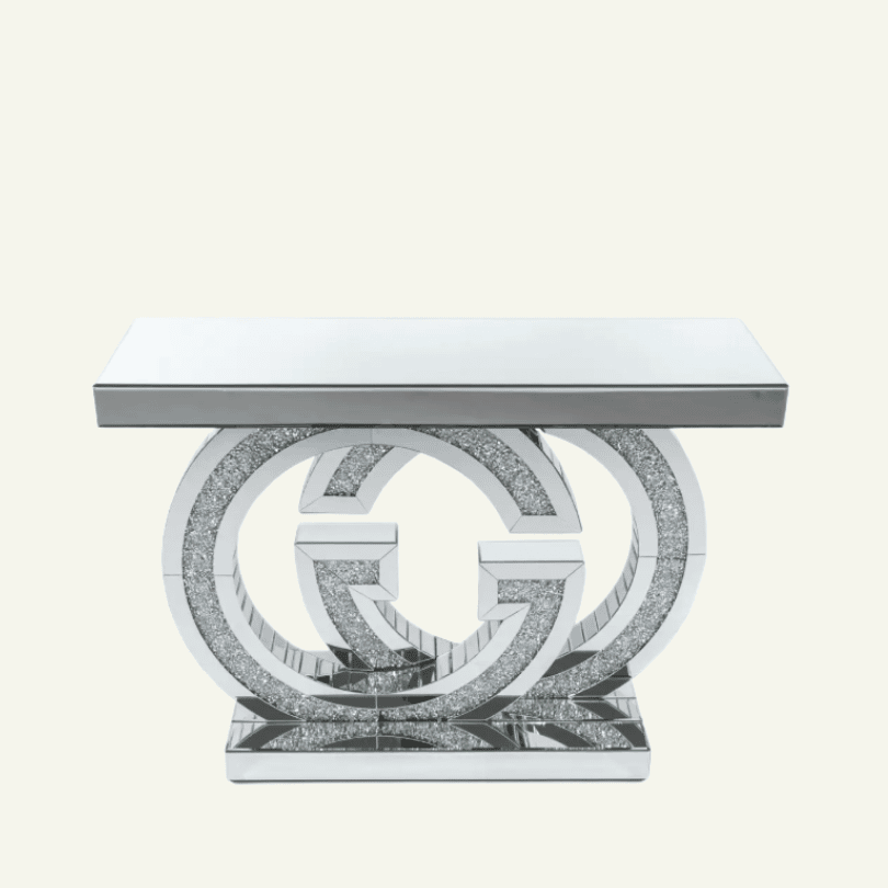 La consola “Grana di Lusso” es una pieza escultórica que convierte el brillo en arte. Con su base de espejos entrelazados en forma de doble “G”, adornada con incrustaciones brillantes, esta consola captura la esencia del glamour moderno y la convierte en protagonista de cualquier ambiente.