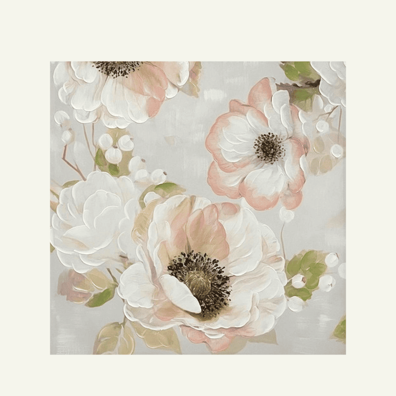 Cuadro “Fiori di Cotone” – Pintura Floral con Toques Aterciopelados 80×80×3cm
