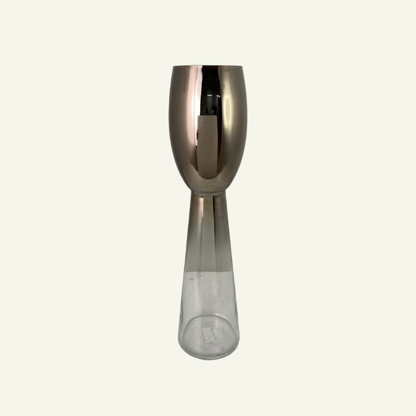 Florero “Coppa Invertita” – Cáliz Espejo & Cuerpo Transparente 15,7x60cm