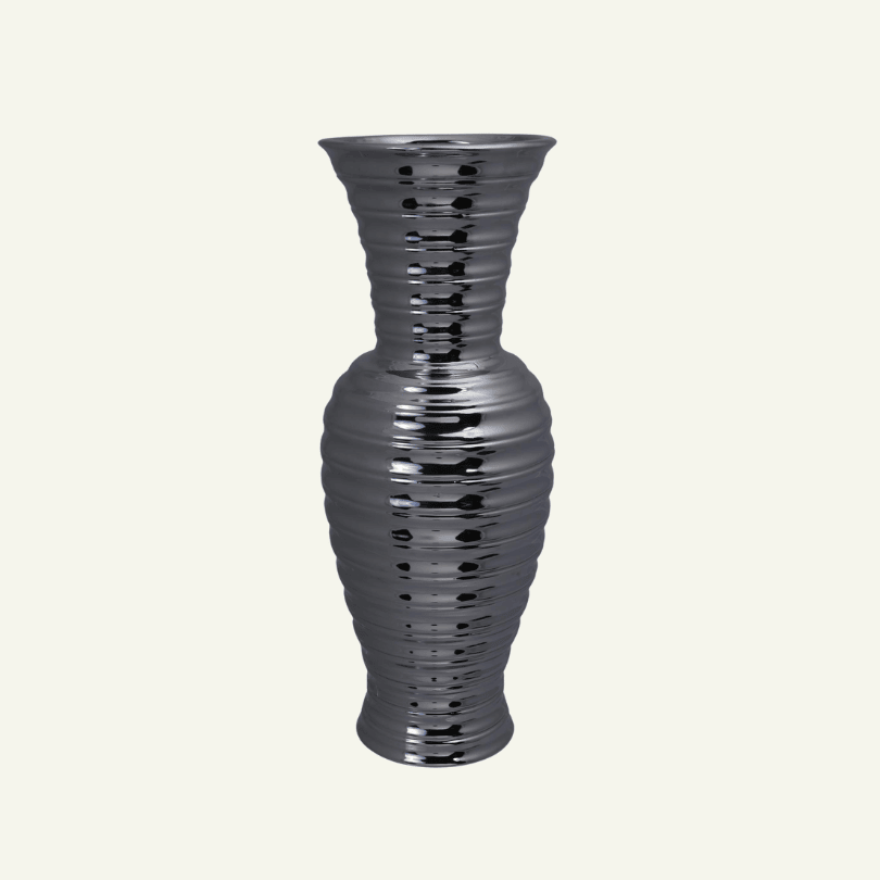 El florero “Lancia Cromata” es una pieza decorativa que impone presencia con su silueta alargada y elegante. Su acabado cromado en tono plata espejo refleja con sutileza el entorno, mientras que sus líneas acanaladas aportan ritmo y textura a la forma clásica del diseño. Un acento contemporáneo que viste cualquier espacio con sofisticación futurista.