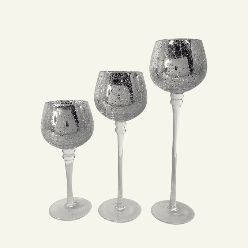 Juego de Portavelas de Cristal Plateado “Luce d’Argento” – Set de 3 Piezas