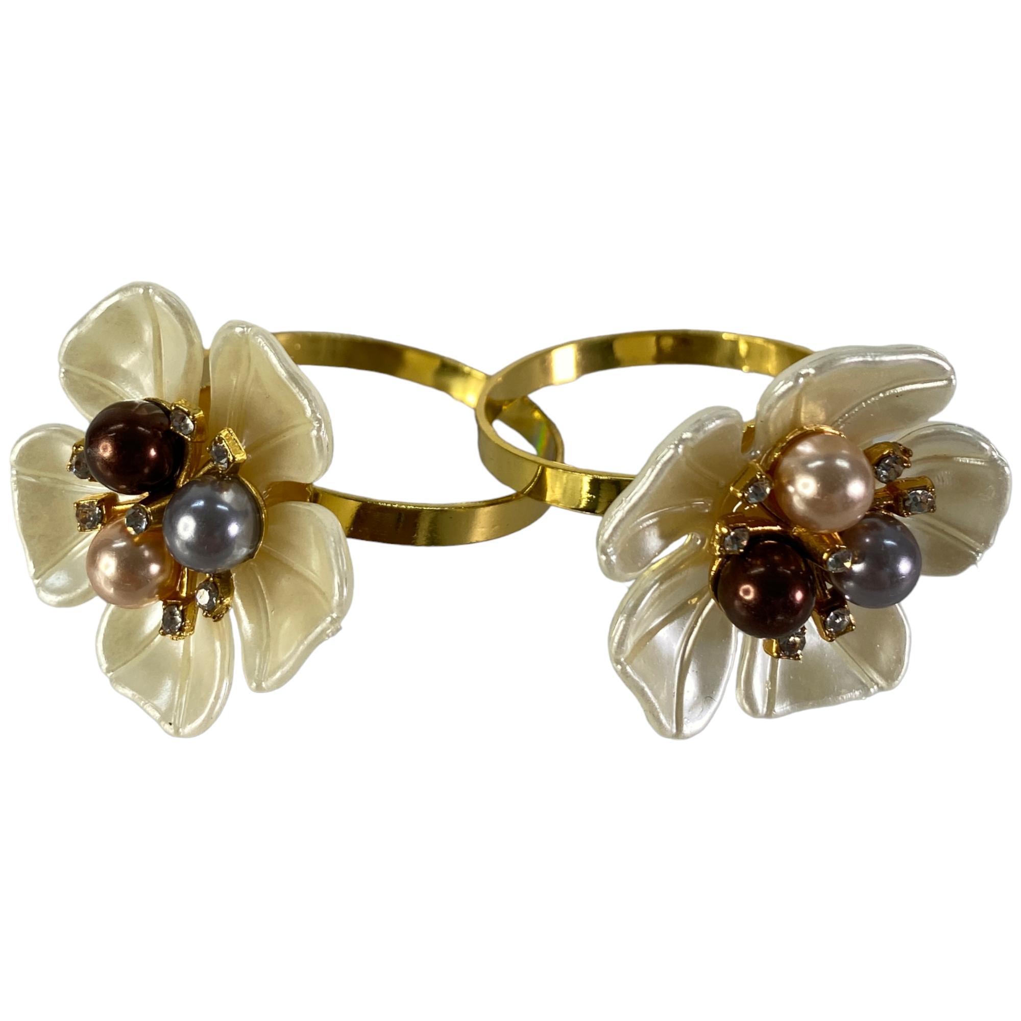 Aro Para Serviletta Diseño Flor Magnolia Con Piedras 6Pzas