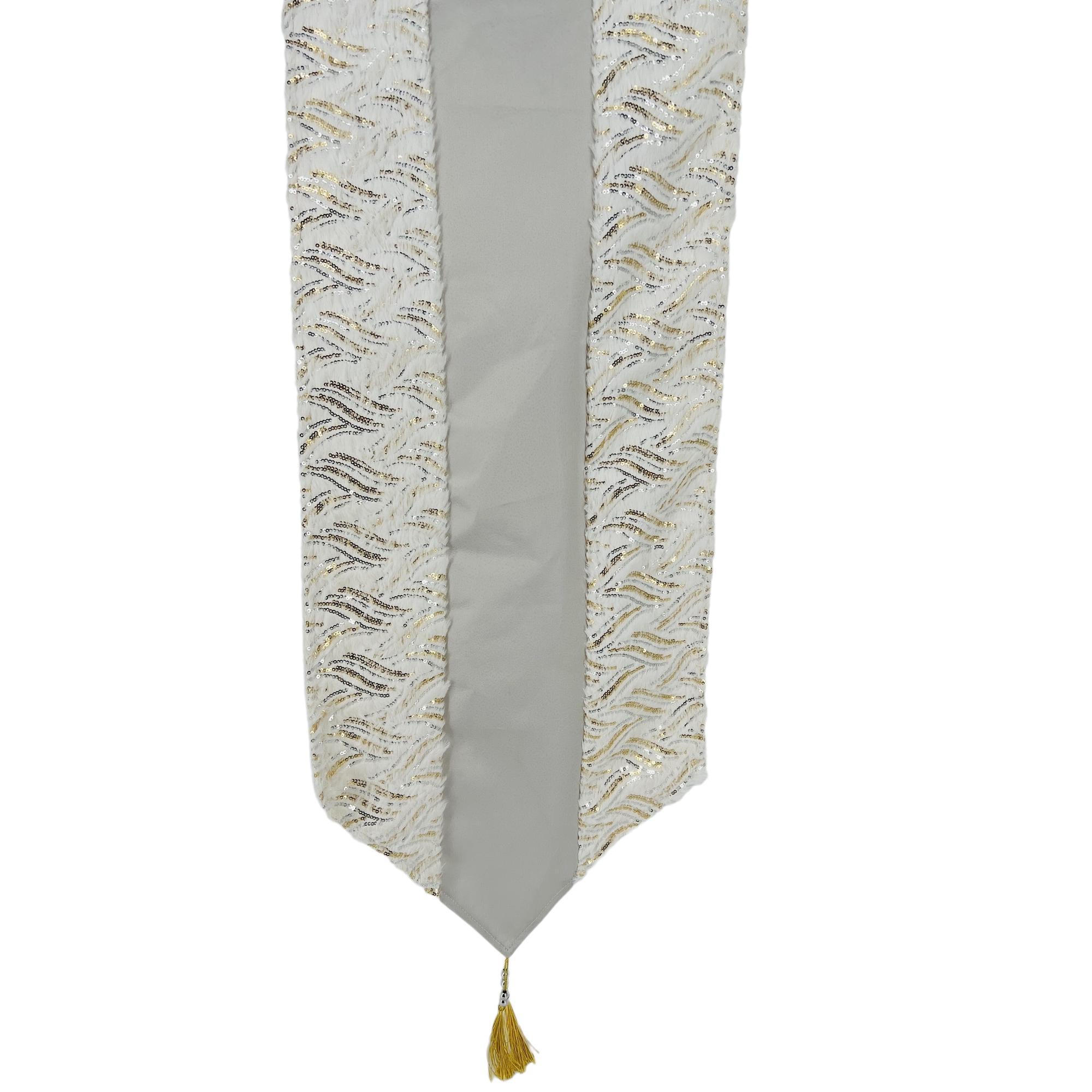 Camino De Mesa Navideño Gris Con Bordes Blancos Y Lentejuelas