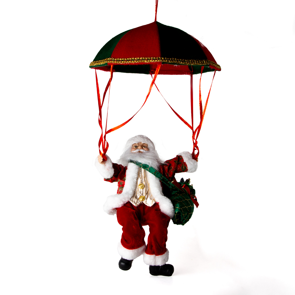Papa Noel Con Paracaidas Rojo Musical Con Movimiento A Batería (3 Pilas)