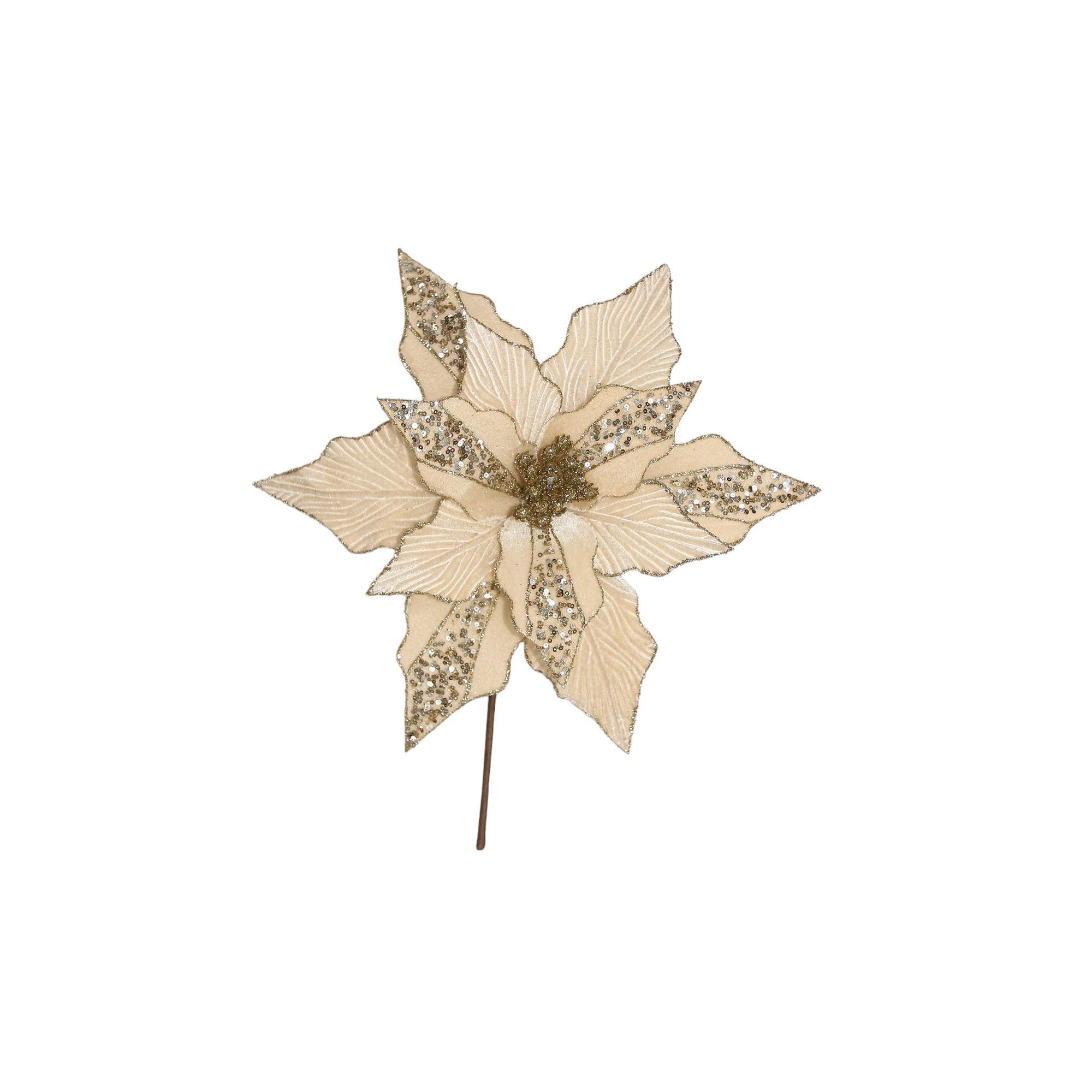 Poinsettia Beige Gamuzda Lentejuelas