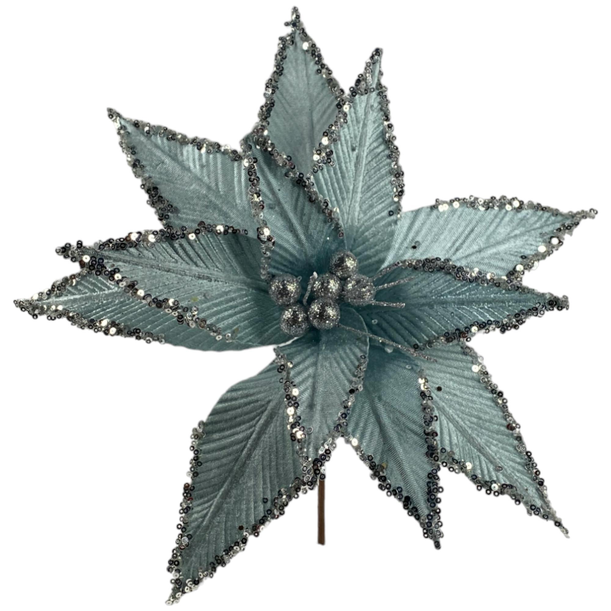 Poinsettia Celeste Pastel Con Lentejuelas