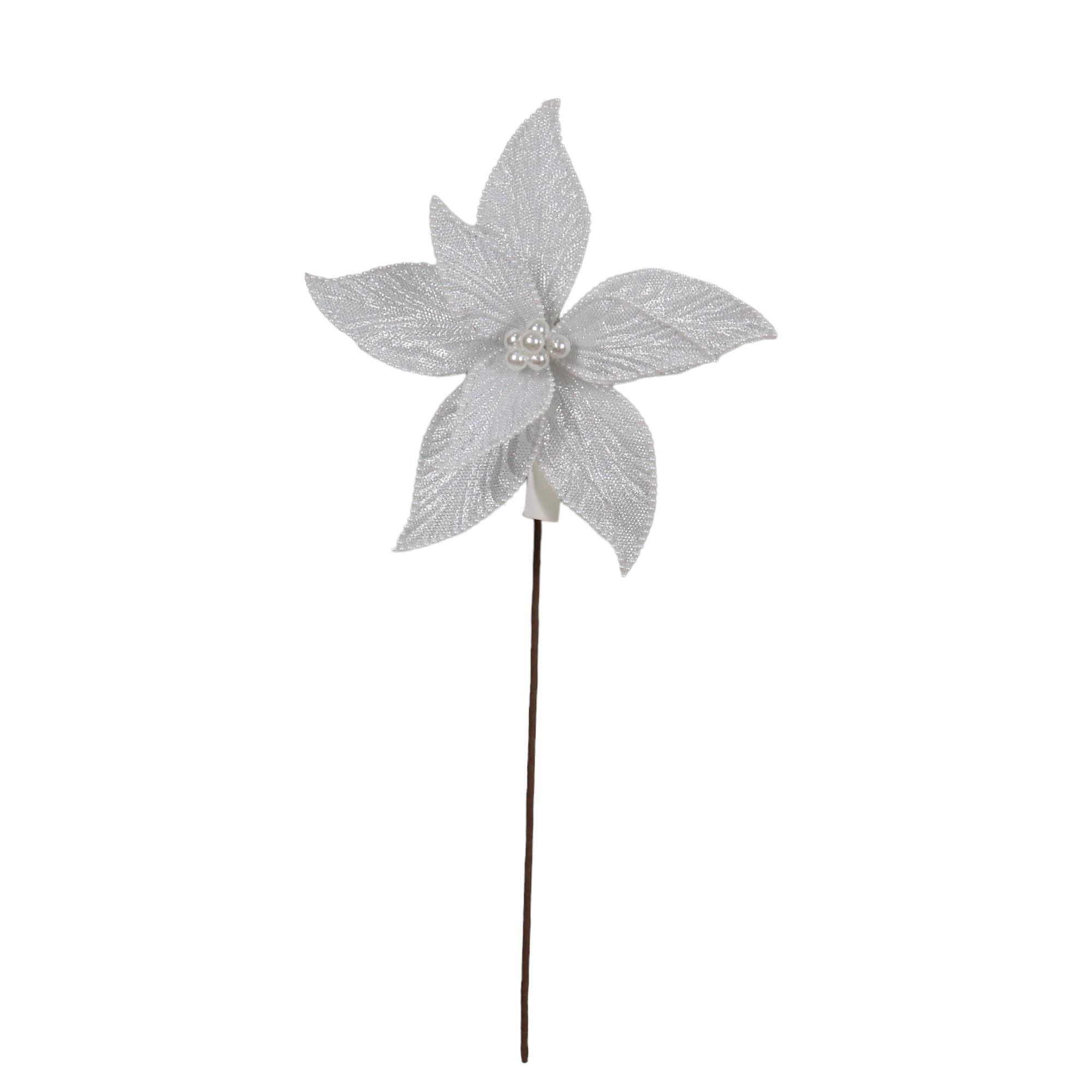 Poinsettia Plateada Con Bordes Perlados