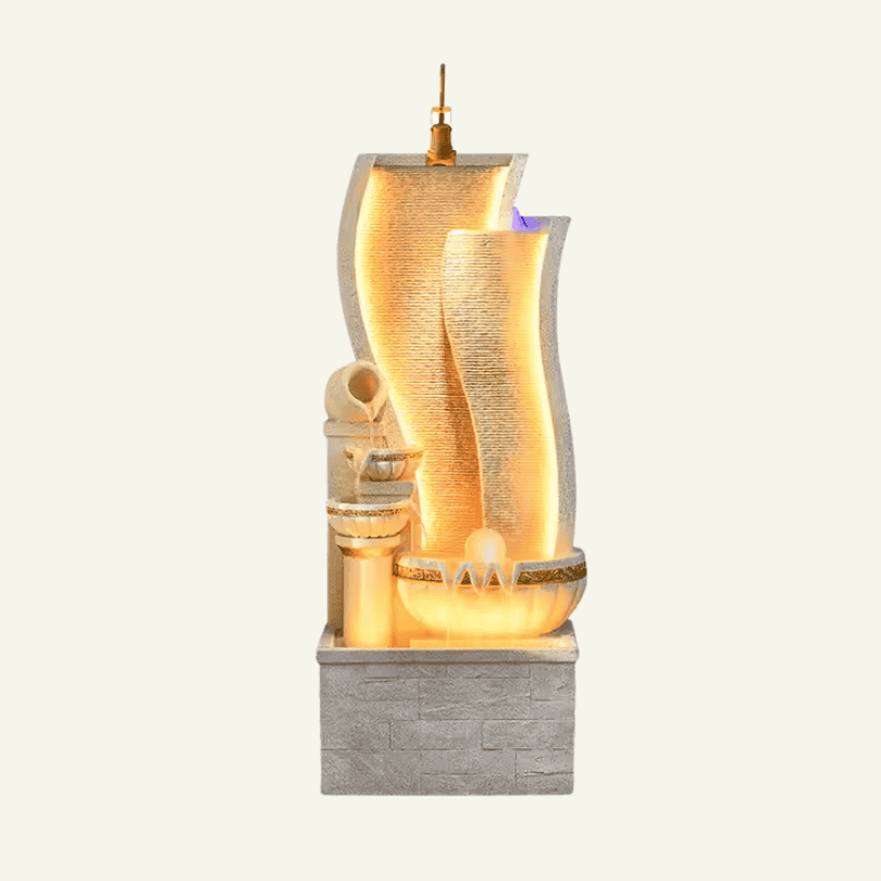 Flujo de agua en múltiples niveles, creando una experiencia visual y sonora armoniosa.