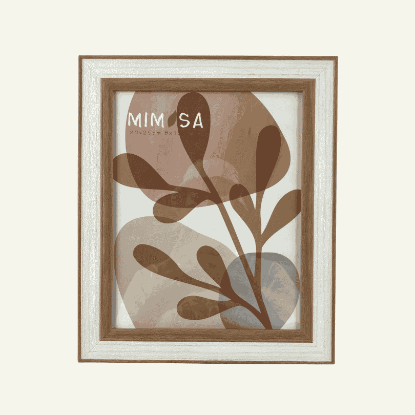 Marco bicolor en tonos blanco y madera natural