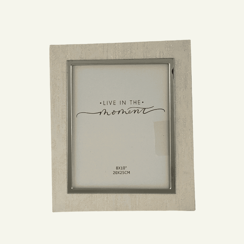 “Tranquillo Attimo” captura la serenidad del presente con su estilo sobrio y relajante. Fabricado en madera clara con acabado mate y borde interno metálico, este portarretrato inspira armonía, perfecto para quienes valoran la belleza en la simpleza.