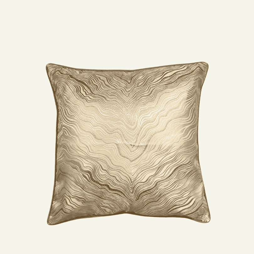 En italiano, Onde Dorate significa “ondas doradas”. El nombre evoca el diseño fluido y luminoso de este cojín, cuyo relieve sutil y brillo elegante aportan un aura de tranquilidad sofisticada a cualquier espacio.